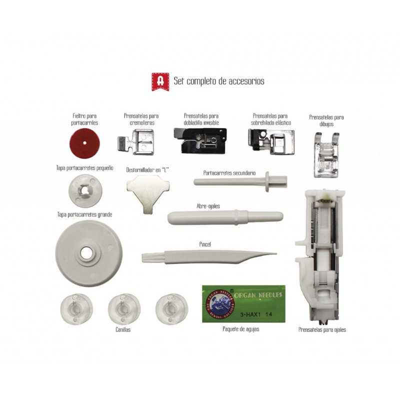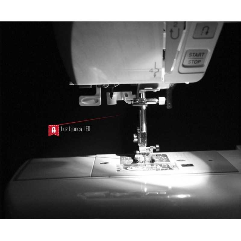 - Lámpara con luz blanca que facilita la visión del cosido.