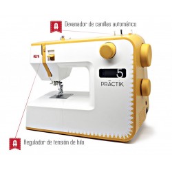 La Alfa Practik 5 es perfecta si estás empezando en el apasionante mundo de la costura. Es una máquina robusta y muy estable con la que podrás realizar todo tipo de tareas: coser vaqueros, poner cremalleras, decorar tus prendas de cuero, etc. Además es una máquina súper práctica ya que incluye enhebrador automático y la posibilidad de hacer los ojales en un solo paso (¡y que te quedan todos iguales y perfectos!). Tiene también una visera de puntada LED para que puedas ver fácilmente qué puntada has elegido. Más abajo podrás ver en detalle las características y vídeos de uso.